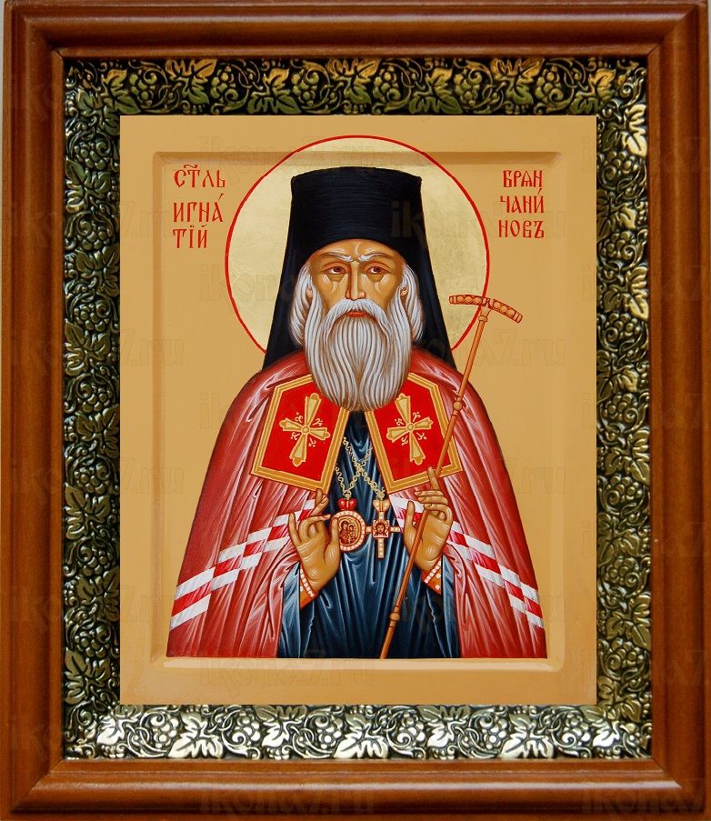 Икона Игнатий Брянчанинов в киоте с басмой Виноградная Лоза (UV-печать)(30416)