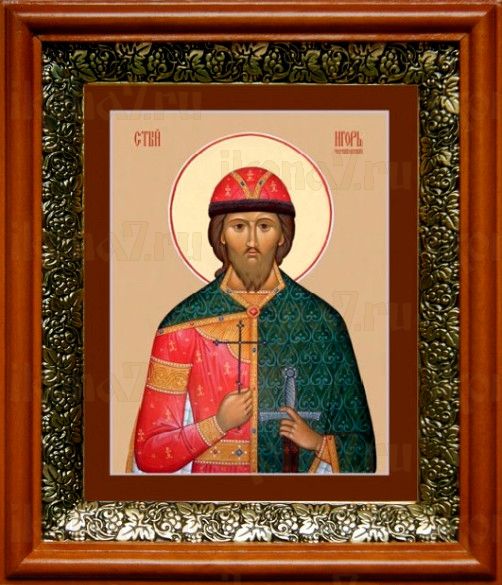 Икона Игорь Черниговский в киоте с басмой Виноградная Лоза (UV-печать)(33079)