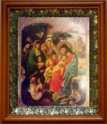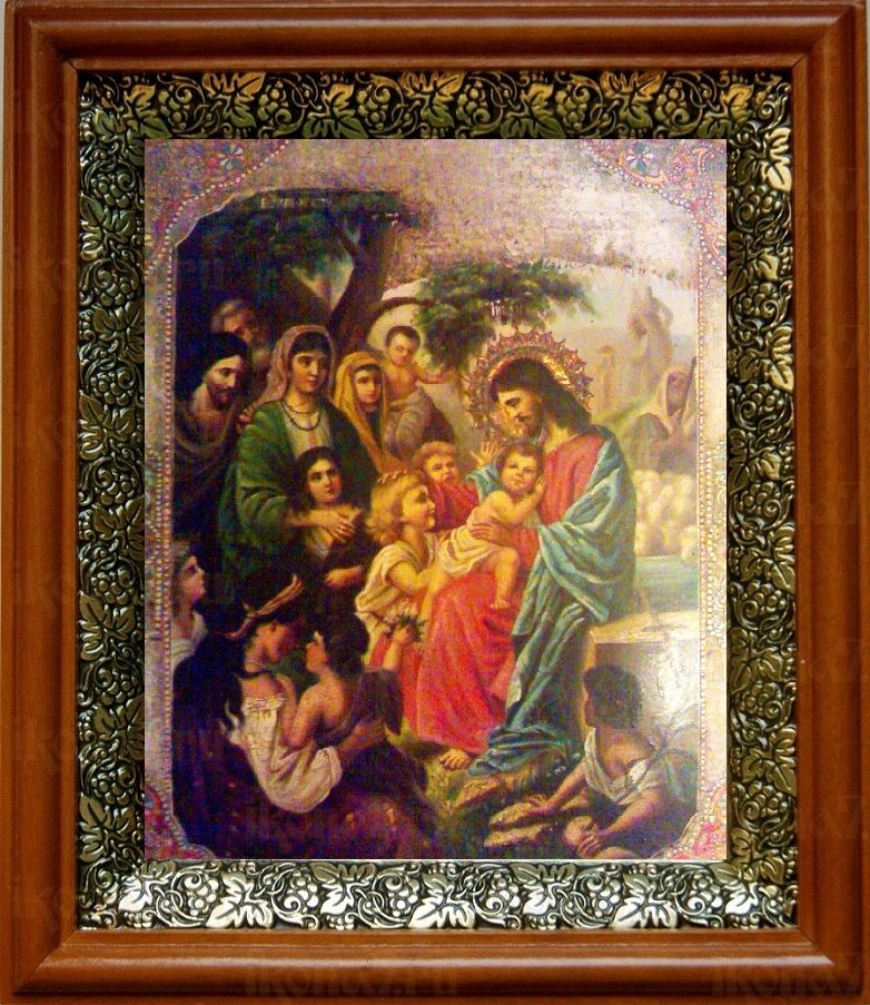 Икона Иисус Христос и дети в киоте с басмой Виноградная Лоза (UV-печать)(30425)