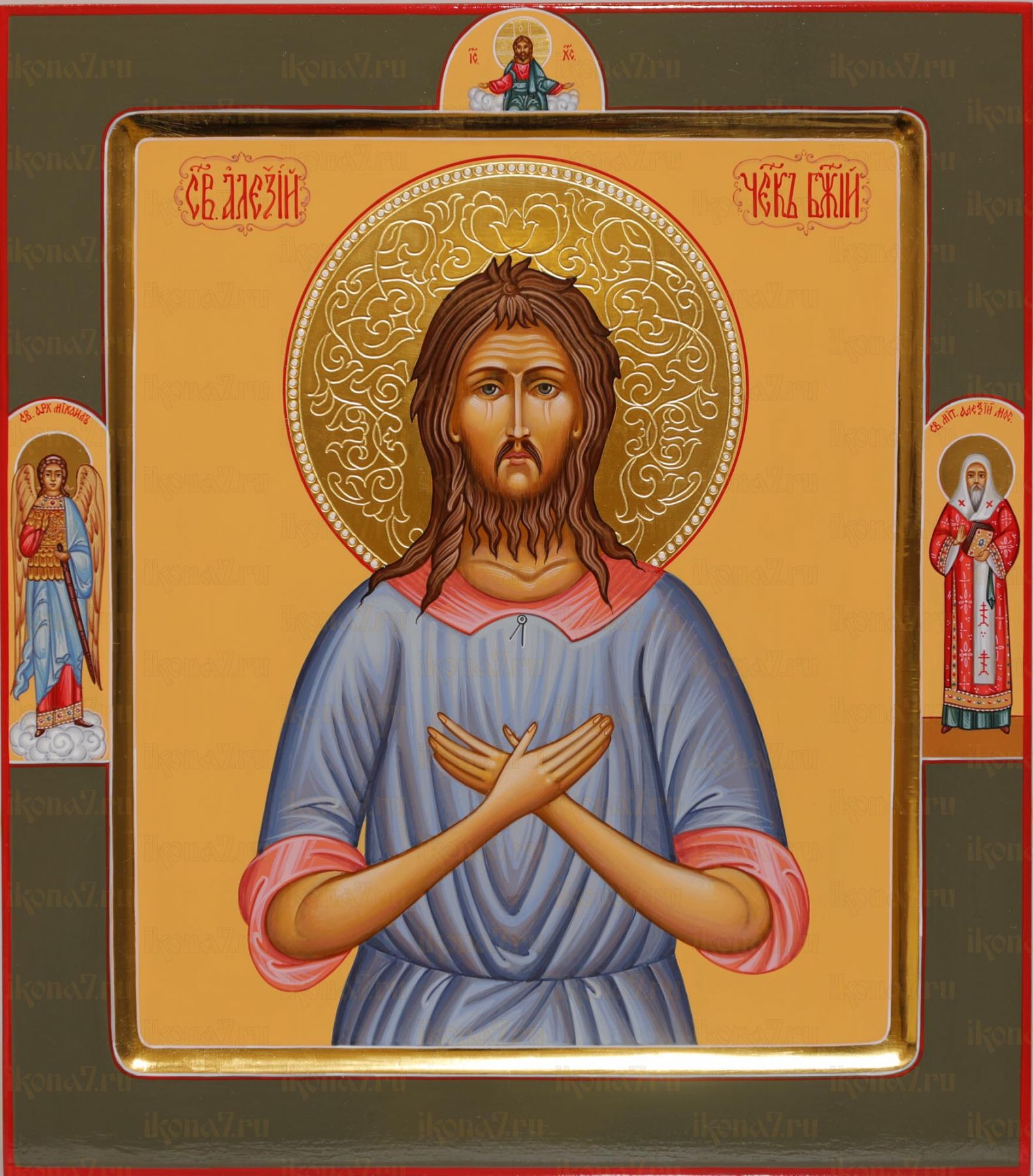 Икона Алексий Человек Божий с предстоящими 27*31см (рукописная с сусальными золотом и чеканкой)