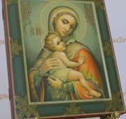 Дополнительно к иконе можно приобрести киот любой сложности. От недорогого киота из березы с простым багетом до пропильного, ажурного с сусальным золотом из драгоценных пород дерева карельской березы, ясеня или дуба.