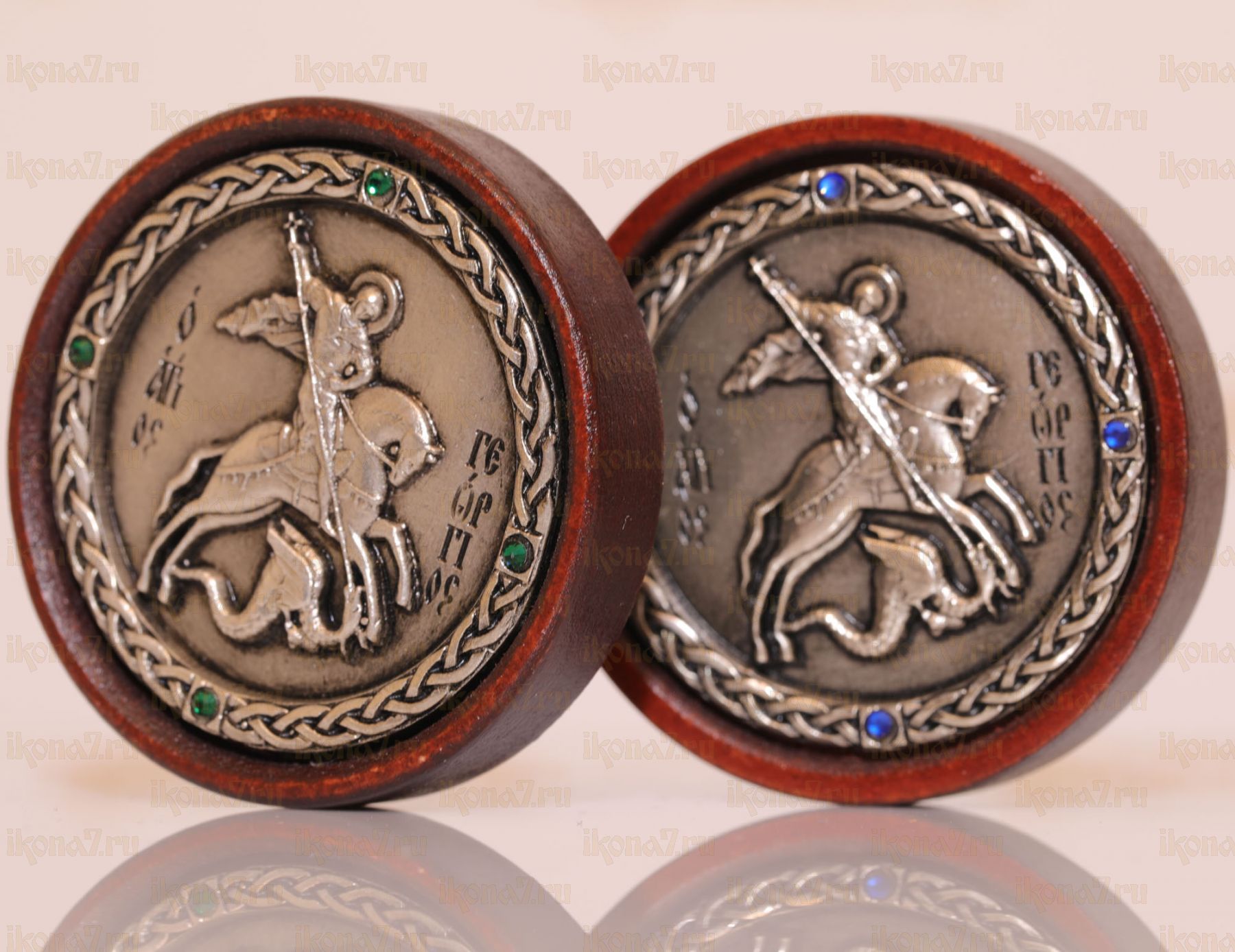 Икона Георгий Победоносец (5,5см) круглая в авто