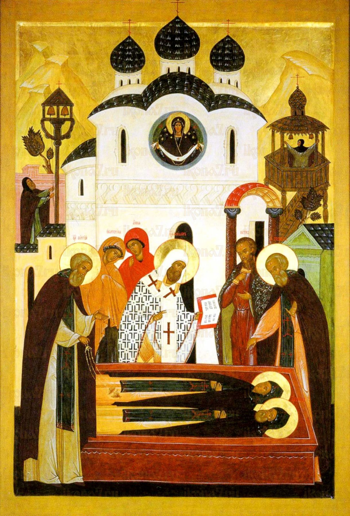 Дополнительно к иконе можно приобрести киот любой сложности. От недорогого киота из березы с простым багетом до пропильного, ажурного с сусальным золотом из драгоценных пород дерева карельской березы, ясеня или дуба.