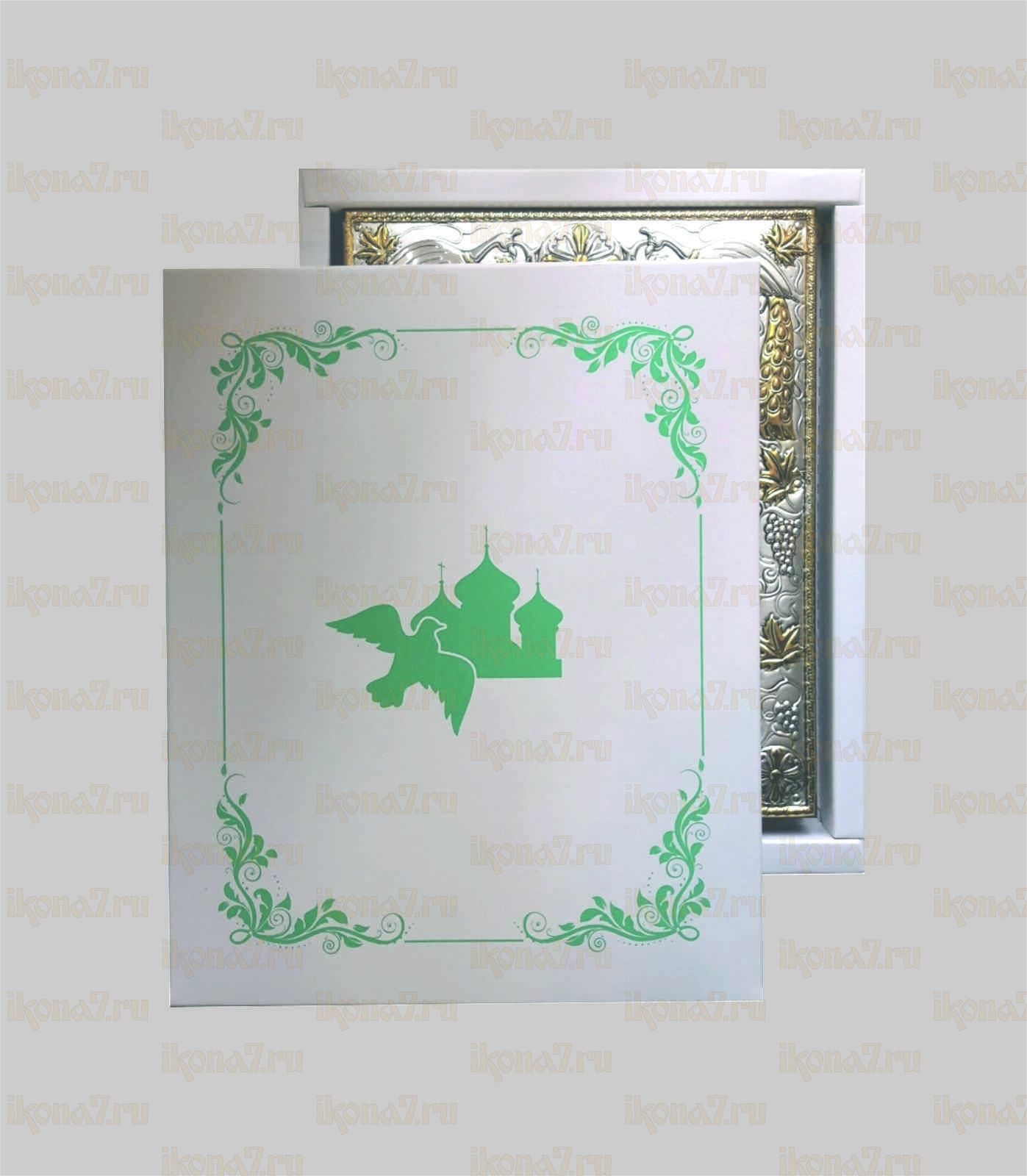 Оклад иконы выполнен из металлической основы, покрытой напылением серебра 925 пробы