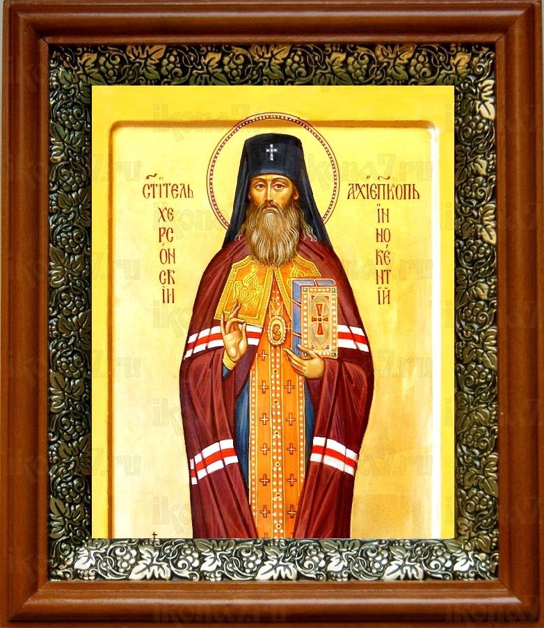 Икона Иннокентий Херсонский в киоте с басмой Виноградная Лоза (UV-печать)(30432)