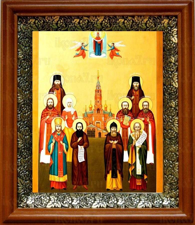 Икона Иннокентий Пензенский и собор чтимых святых земли павлово-посадской в киоте с басмой Виноградная Лоза (UV-печать)(30431)