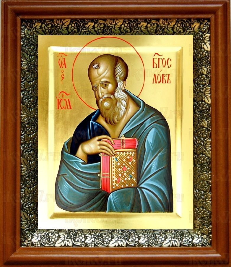 Икона Иоанн Богослов в киоте с басмой Виноградная Лоза (UV-печать)(30434)