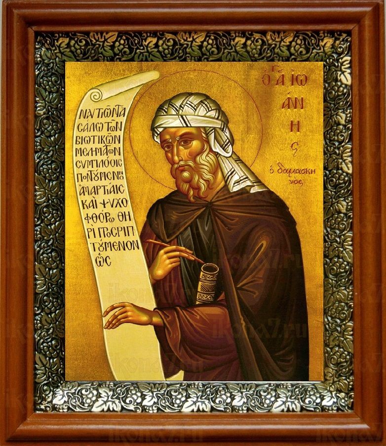Икона Иоанн Дамаскин в киоте с басмой Виноградная Лоза (UV-печать)(30436)