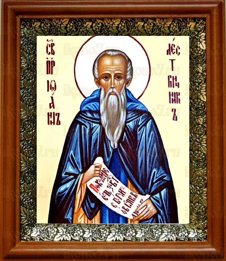 Икона Иоанн Лествичник в киоте с басмой Виноградная Лоза (UV-печать)(30444)