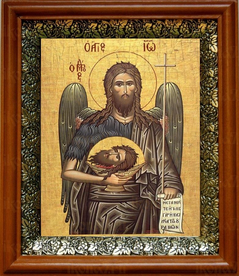 Икона Иоанн Предтеча Ангел Пустыни в киоте с басмой Виноградная Лоза (UV-печать)(30452)