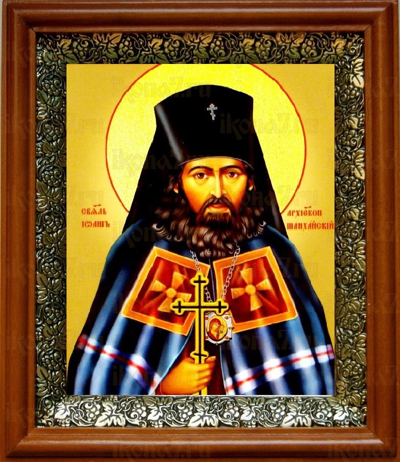 Икона Иоанн Шанхайский в киоте с басмой Виноградная Лоза (UV-печать)(30464)
