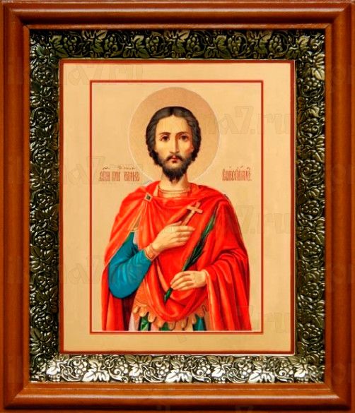 Икона Иоанн Воин в киоте с басмой Виноградная Лоза (UV-печать)(33084)