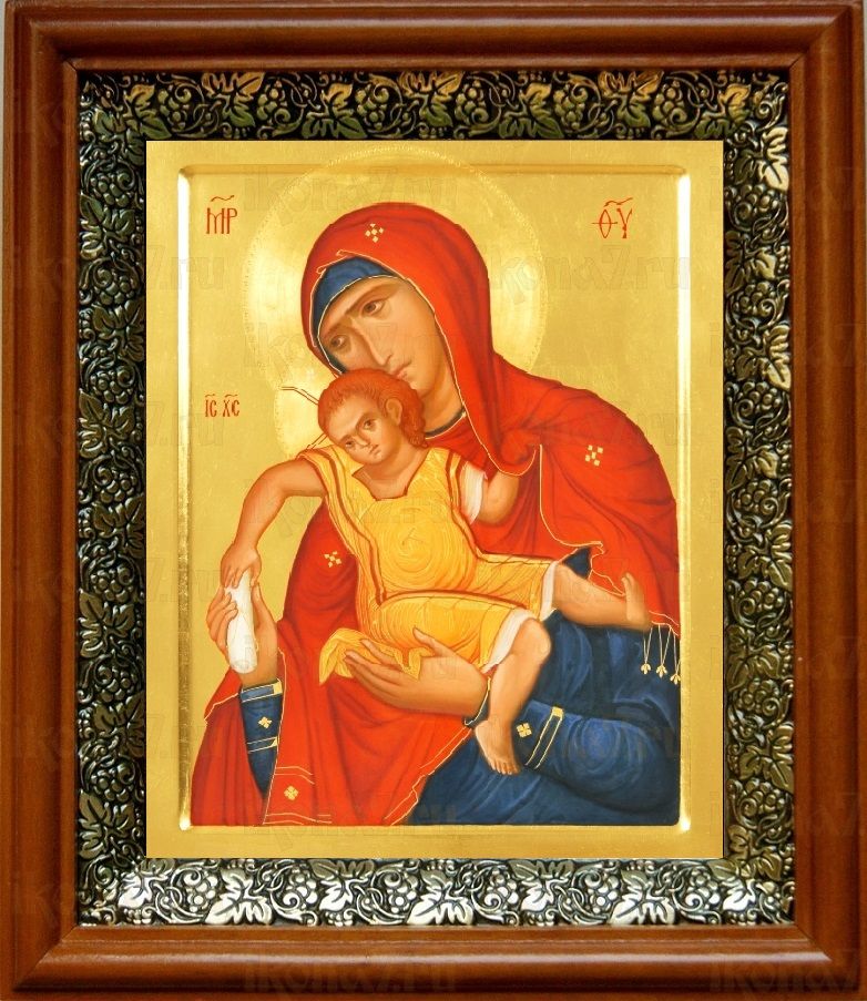 Киккская (Милостивая) икона Божьей Матери в киоте с басмой Виноградная Лоза (UV-печать)(30509)