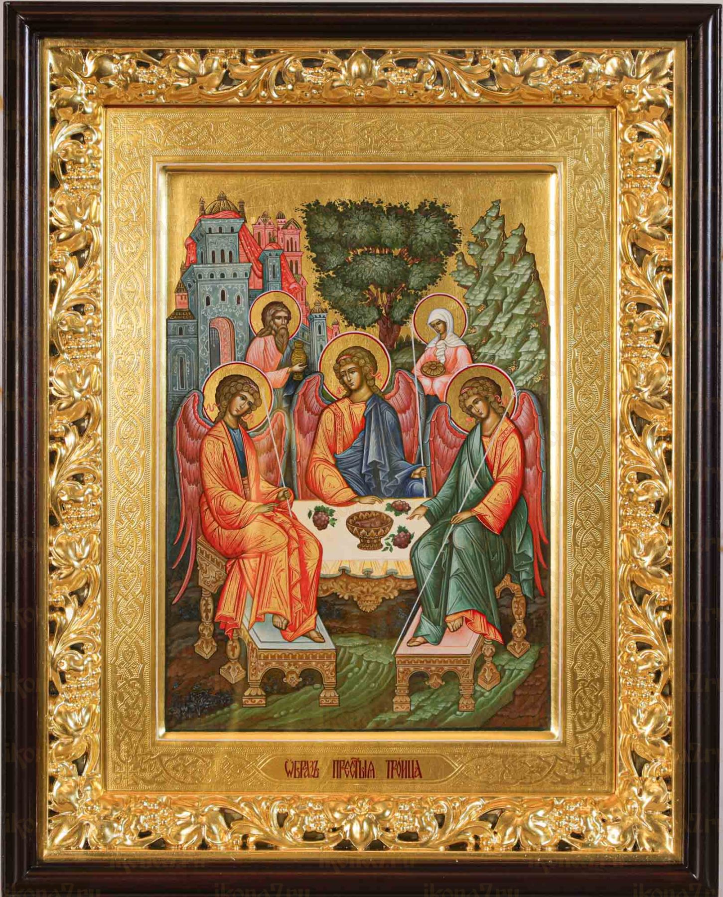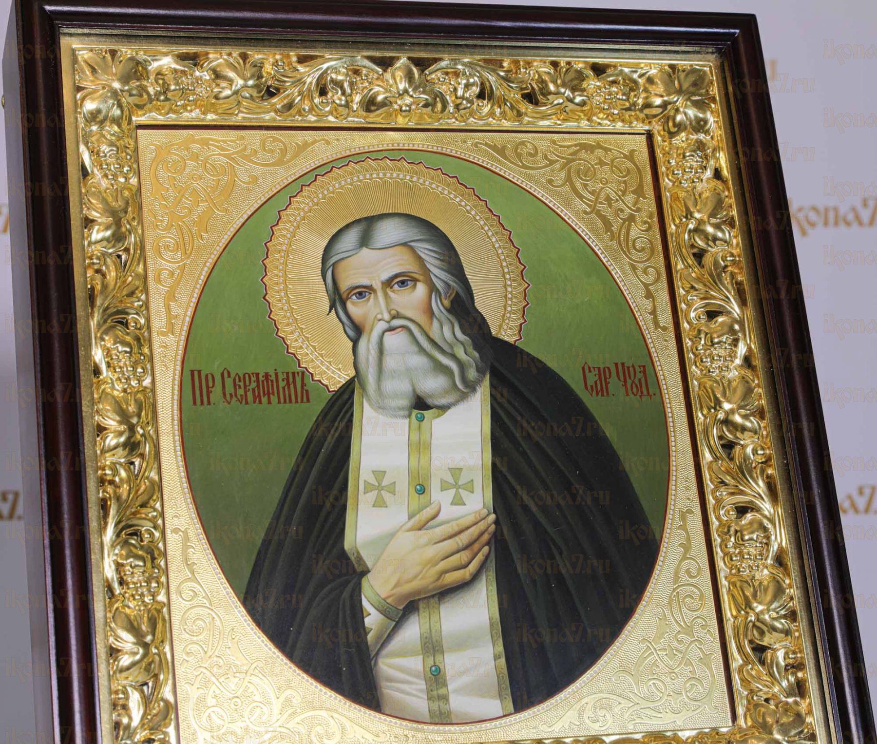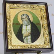 Деревянный киот ручной работы из дуба для иконы. Внутренняя рамка (багет) пропильная, в виде виноградной лозы, сделана вручную и покрыта настоящим сусальным золотом.