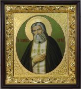 Деревянный киот ручной работы из дуба для иконы. Внутренняя рамка (багет) пропильная, в виде виноградной лозы, сделана вручную и покрыта настоящим сусальным золотом.