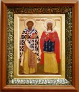 Икона Киприан и Иустина в киоте с басмой Виноградная Лоза (UV-печать)(33091)