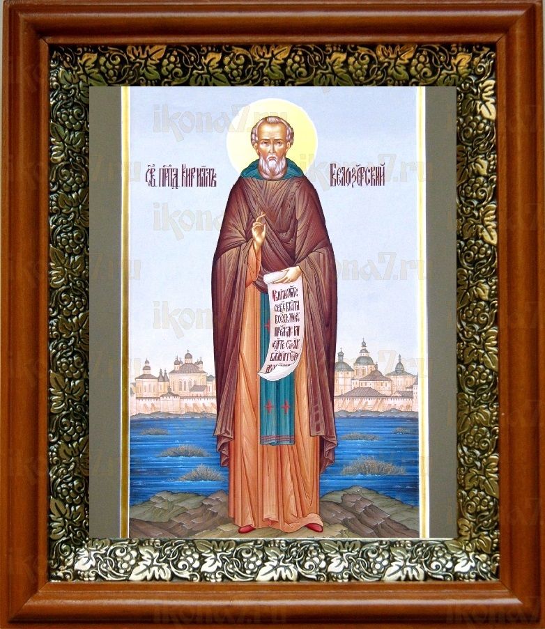 Икона Кирилл Белозерский в киоте с басмой Виноградная Лоза (UV-печать)(30519)