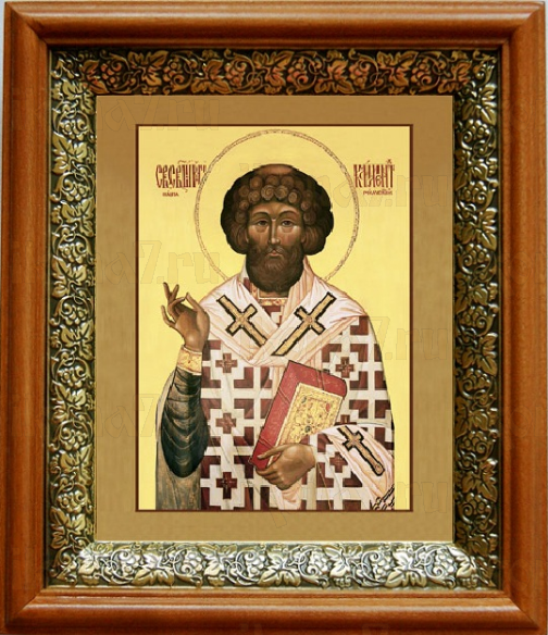 Икона Климент, папа Римский в киоте с басмой Виноградная Лоза (UV-печать)(33094)