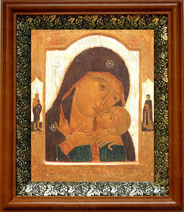 Корсунская икона Божьей Матери в киоте с басмой Виноградная Лоза (UV-печать)(30536)