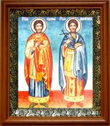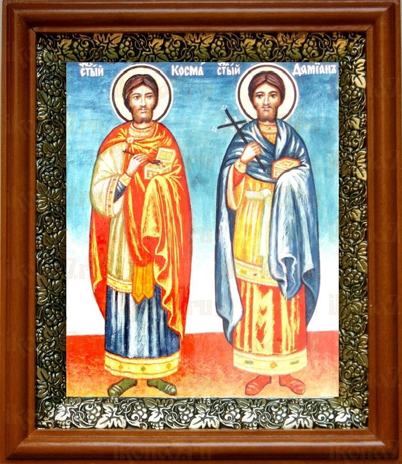 Икона Косьма и Дамиан в киоте с басмой Виноградная Лоза (UV-печать)(30540)