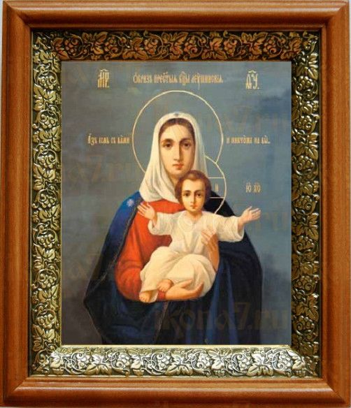 Леушинская икона Божьей Матери в киоте с басмой Виноградная Лоза (UV-печать)(33099)