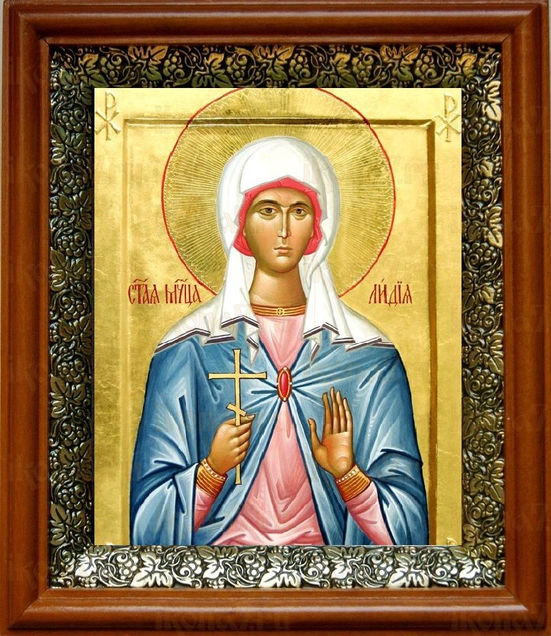 Икона Лидия Иллирийская в киоте с басмой Виноградная Лоза (UV-печать)(30557)