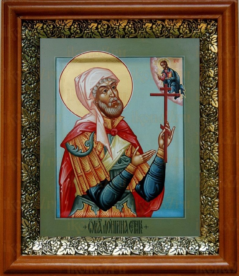 Икона Лонгин Сотник в киоте с басмой Виноградная Лоза (UV-печать)(30558)