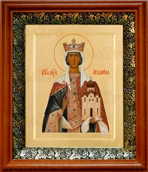 Икона Людмила Чешская в киоте с басмой Виноградная Лоза (UV-печать)(33102)