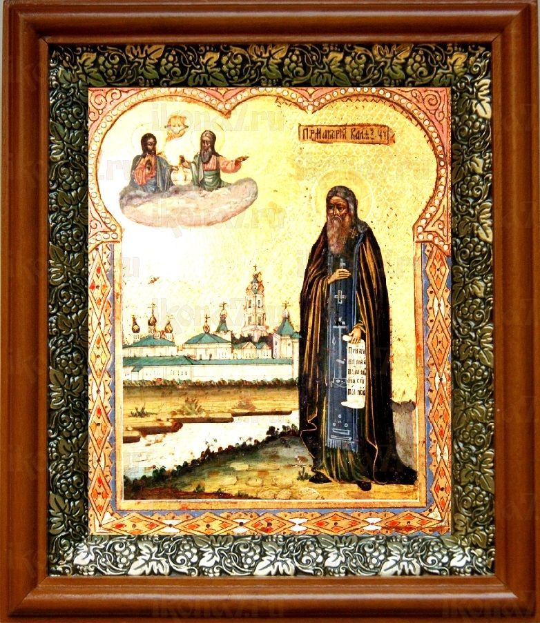 Икона Макарий Калязинский в киоте с басмой Виноградная Лоза (UV-печать)(30572)