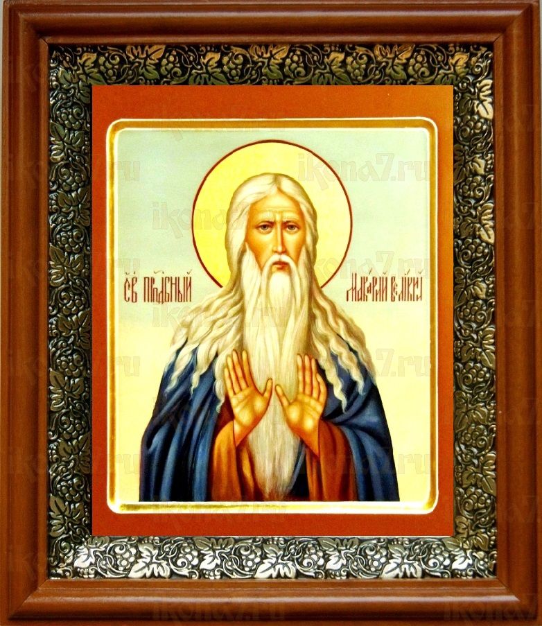 Икона Макарий Великий в киоте с басмой Виноградная Лоза (UV-печать)(30568)