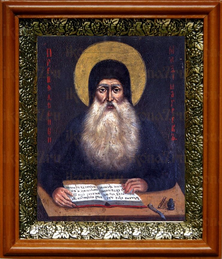 Икона Максим Грек в киоте с басмой Виноградная Лоза (UV-печать)(30579)