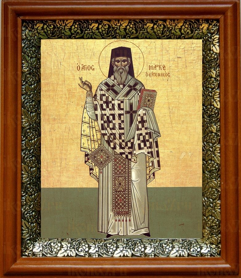 Икона Марк Ефесский в киоте с басмой Виноградная Лоза (UV-печать)(30598)