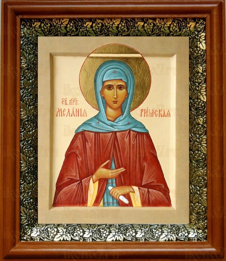Икона Мелания Римляныня в киоте с басмой Виноградная Лоза (UV-печать)(30609)