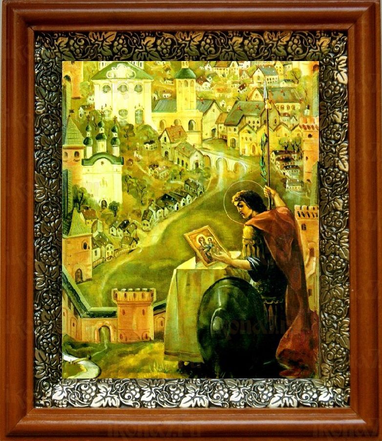 Икона Меркурий Смоленский в киоте с басмой Виноградная Лоза (UV-печать)(30613)