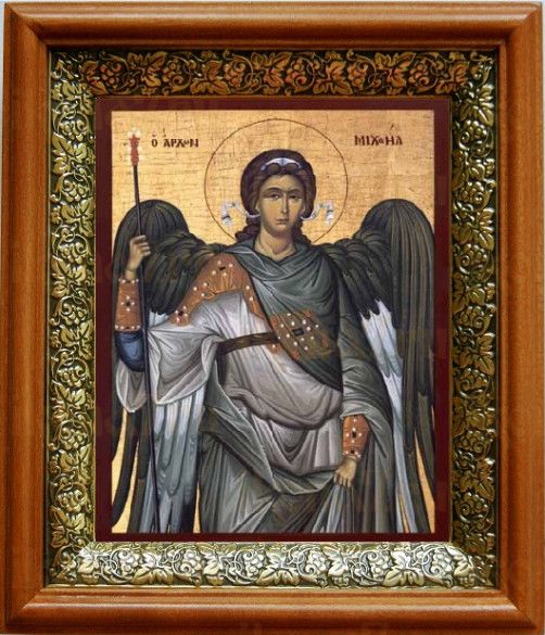 Икона Михаил Архангел в киоте с басмой Виноградная Лоза (UV-печать)(33111)