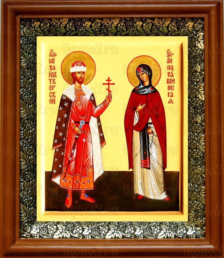 Икона Михаил Тверской и Анна Кашинская в киоте с басмой Виноградная Лоза (UV-печать)(30629)