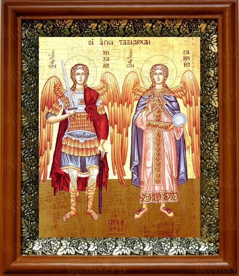 Икона Михаил и Гавриил в киоте с басмой Виноградная Лоза (UV-печать)(30624)