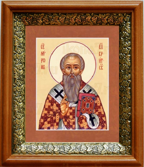 Икона Мирон Критский в киоте с басмой Виноградная Лоза (UV-печать)(33108)