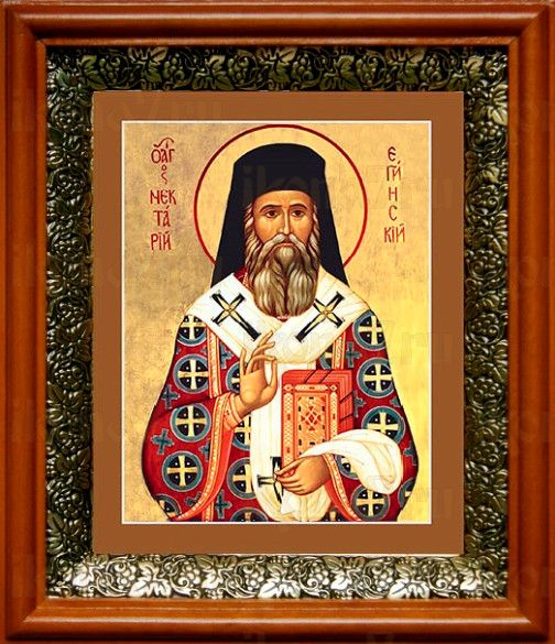 Икона Нектарий Эгинский в киоте с басмой Виноградная Лоза (UV-печать)(33119)