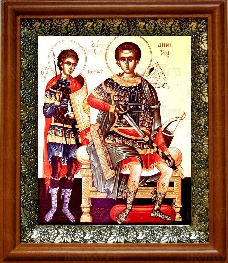Икона Нестор Солунский в киоте с басмой Виноградная Лоза (UV-печать)(30652)
