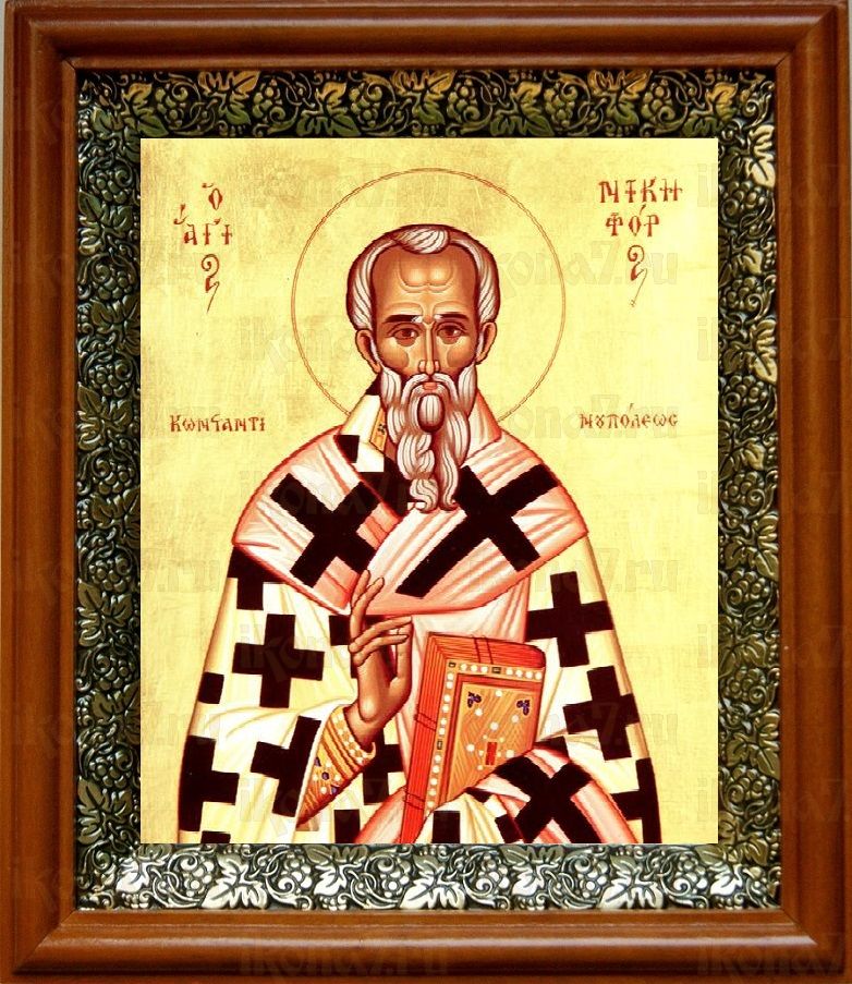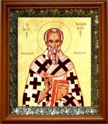 Икона Никифор Константинопольский в киоте с басмой Виноградная Лоза (UV-печать)(30667)