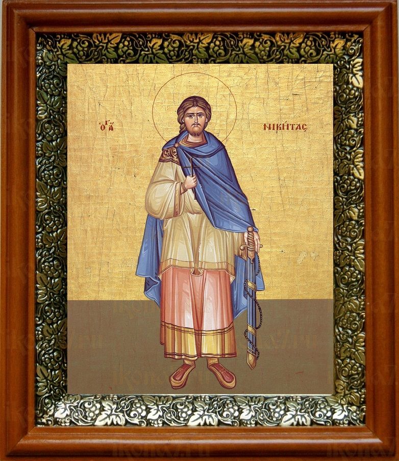 Икона Никита Готфский в киоте с басмой Виноградная Лоза (UV-печать)(30661)