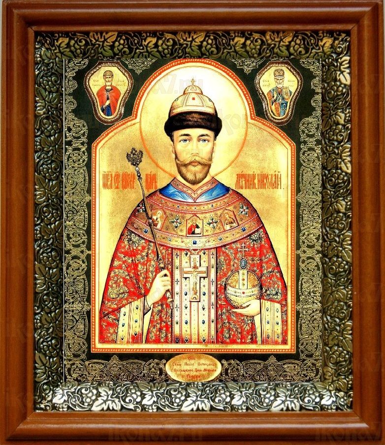 Икона Николай 2, царь в киоте с басмой Виноградная Лоза (UV-печать)(30672)