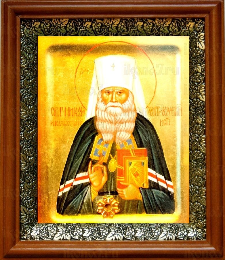 Икона Николай Алма-Атинский в киоте с басмой Виноградная Лоза (UV-печать)(30674)