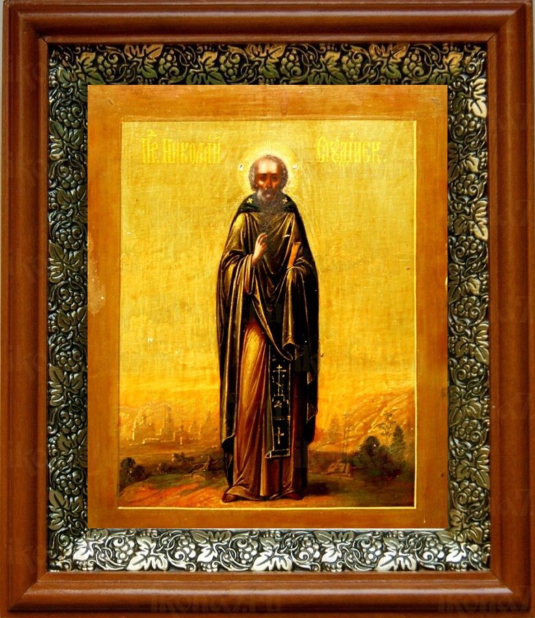 Икона Николай Студийский в киоте с басмой Виноградная Лоза (UV-печать)(30684)