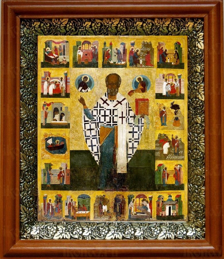 Икона Николай Зарайский в киоте с басмой Виноградная Лоза (UV-печать)(30677)