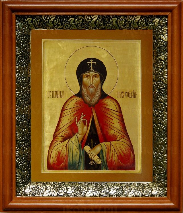 Икона Нил Сорский в киоте с басмой Виноградная Лоза (UV-печать)(30691)