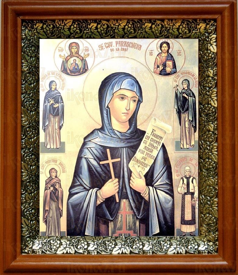 Икона Параскева Петка Сербская в киоте с басмой Виноградная Лоза (UV-печать)(30727)