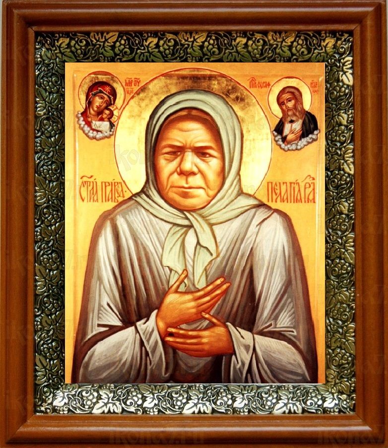 Икона Пелагея Рязанская в киоте с басмой Виноградная Лоза (UV-печать)(30736)