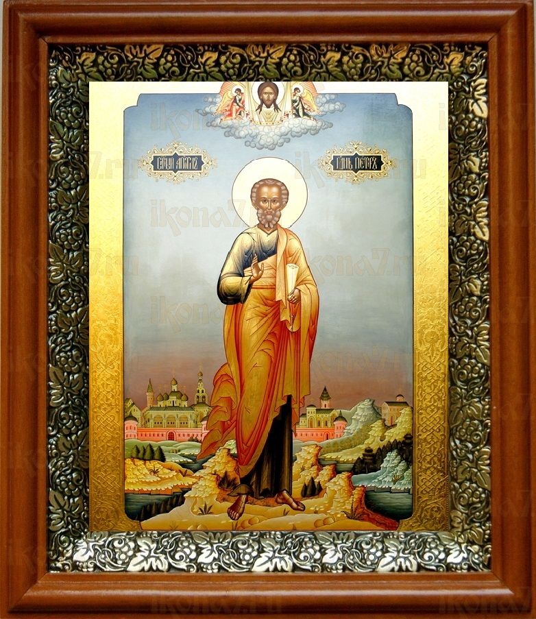 Икона Петр, апостол в киоте с басмой Виноградная Лоза (UV-печать)(30756)